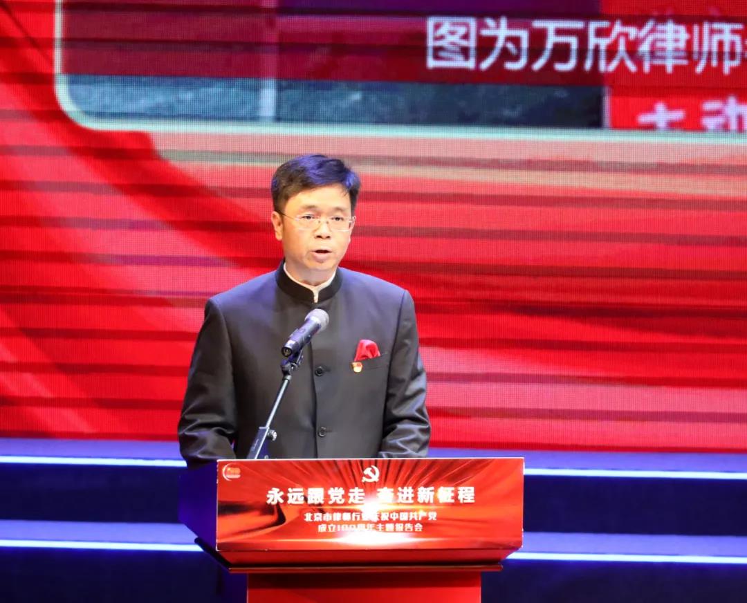 为庆祝中国共产党成立100周年,“永远跟党走 奋进新征程——北京市律师行业庆祝中国共产党成立100周年主题报告会”隆重举行。